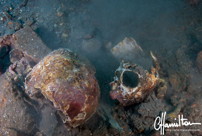 Today she is somewhat intact, lying upright in the mouth of the harbor. Unexploded shells are strewn about the deck, and there are even human remains scattered about some of the decks — a testament to how swiftly she was lost.