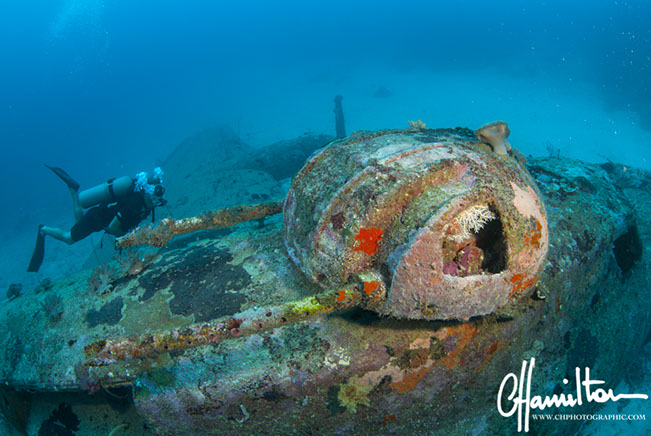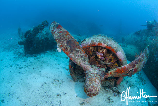 Black Jack is an enormous B17 bomber, known also as a flying fortress. Captain Kenneth D. McCullar nicknamed her "Black Jack" because the serial number ended in "21". Discovered by wreck hunter Rod Pearce, she lies in 56 meters of water off a small village where she was downed on the 10th July 1943 - Milne Bay, Papua New Guinea