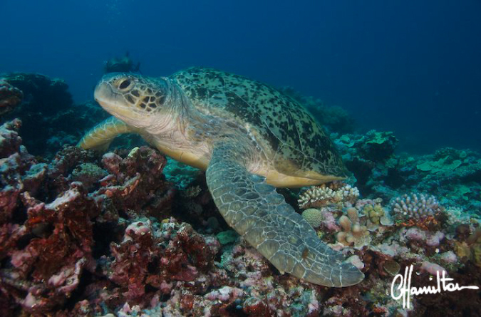 The Far Northern section of the Great Barrier Reef is home to one of the most significant sea bird rookeries in Australia as well as the largest Green turtle (Chelonia mydas) nesting site in the world. Tiger sharks (Galeocerdo curvier), congregate in great numbers around the islands to feast on an abundance of easy prey.