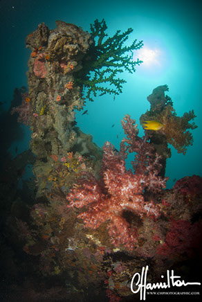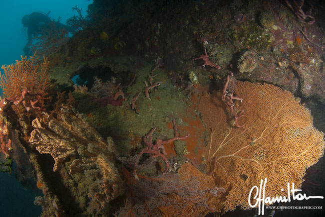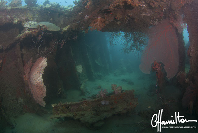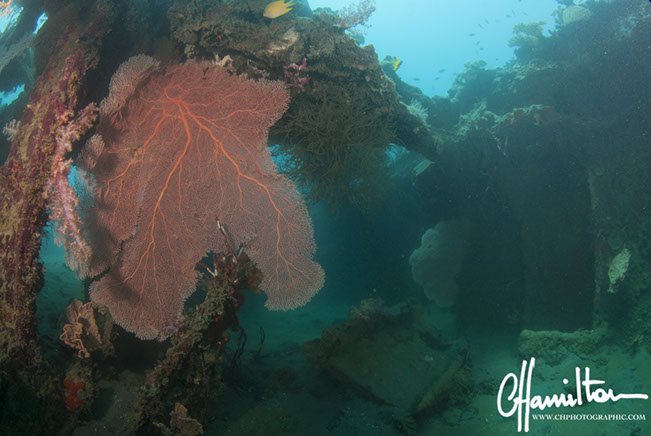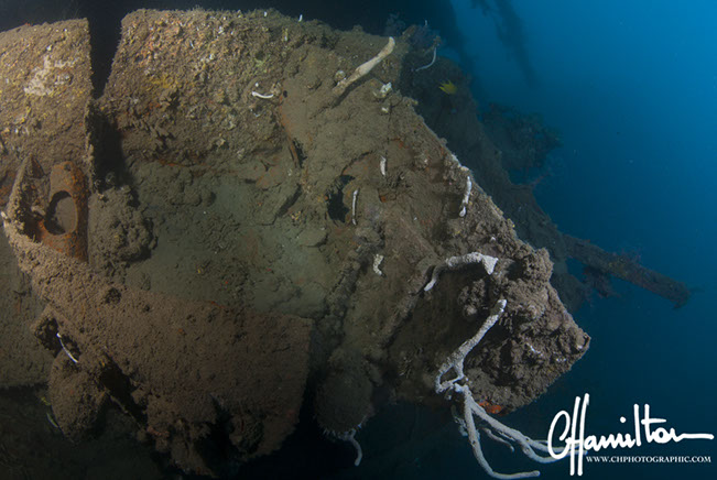 The Hirokawa Maru was a cargo ship for the Kawasaki Line before she began her military career, cut short by a American raid on November 14th, 1942. She was sunk off a white sand beach just north of Honiara where she lies today, semi exposed. Despite the shallow waters in which she rest and numerous salvage raids, the wreck maintains an impressive structure, and supports a stunning forest of soft coral.