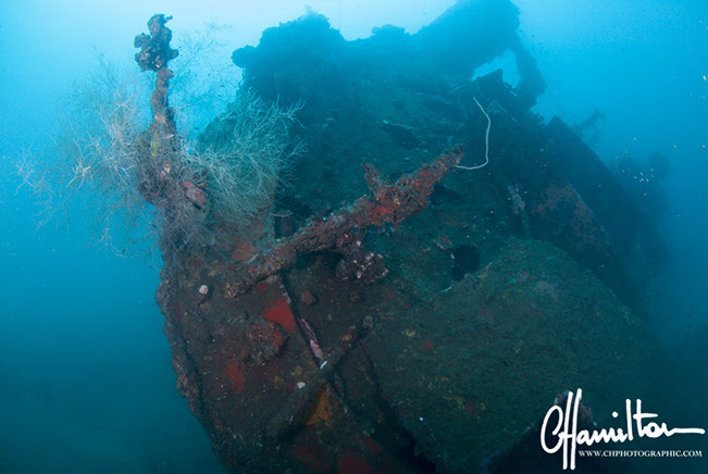 Today she is somewhat intact, lying upright in the mouth of the harbor. Unexploded shells are strewn about the deck, and there are even human remains scattered about some of the decks — a testament to how swiftly she was lost.