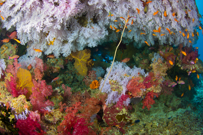The warm tropical waters of norther Fiji are host to a beautiful array or reef fish and coral.
